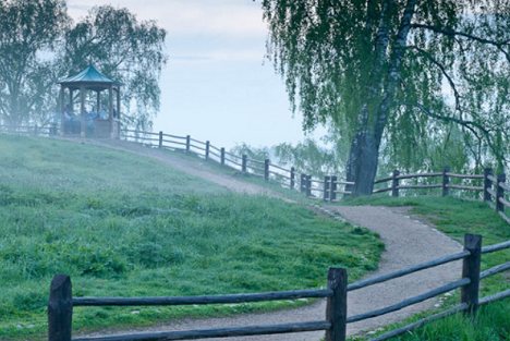 One of his most famous works, Over Eternal Peace, was painted on the mountain which is now called Levitan's Mount. The Voskreseniya Church (Resurrection Church) was moved here from the village of Bilyukovo, and built in 1700. It is very similar to the one painted by Levitan (Petropavlovskaya Church or St. Peter's and St. Paul's Church, which burnt down in 1903). There is also a monument to the painter showing Levitan at work.