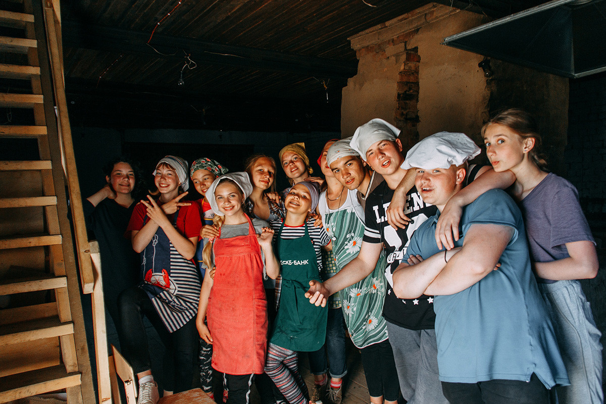 Every day, one of the otryads takes a turn cooking for everyone with a real stone stove, whereas other camp members participate in entertainment or educational activities.