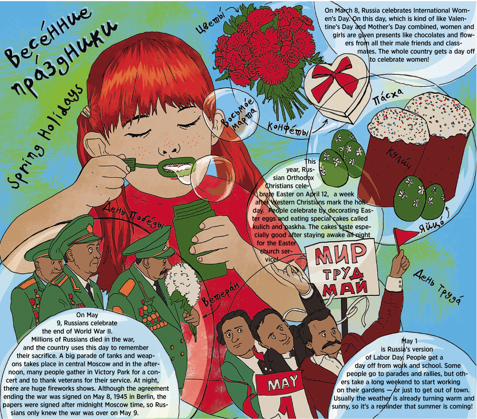 Cartoonist Natalia Mikhaylenko gives you all the necessary vocabulary you need to know about spring holidays.