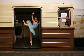 A ballerina is dancing in the metro station "Kropotkinskaya" during the annual event "Music in the Metro" in Moscow, on May 17. Source: ITAR-TASS / Anton Novoderezhkin